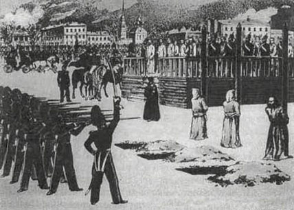 Just such a sinister farce took place on this very day, December 22, 162 years ago (Wait, you didn’t think I was talking about the present!). In St. Petersburg’s Semenovsky Square, Fyodor Dostoevsky and fellow members of the Petrashevsky circle were brought in front of a firing squad on orders of Tsar Nicholas I, told they were to be executed and then given a staged last second reprieve.