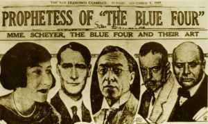 Photo – 1) Abstract Head by Alexej Jawlensky, 1933. The painting was acquired from the artist by fellow artist, art dealer and founder of Munich’s Blue Four group Galka Scheyer. Besides Scheyer the group consisted of Russian Jawlensky, Russian Wassily Kandinsky, Swiss Paul Klee and New York-born German-American Lyonel Feininger. Scheyer was the only “true” German in the group, which of course meant that being Jewish she ended up settling in Hollywood and banging her head against a wall trying to sell the group’s paintings. 2) Galka Scheyer and the Blue Four/wikimedia commons