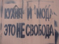 Photo – Russian graffiti that says “Kitchen and fashion, that’s not freedom” by Quinn Dombrowski/wikimedia commons
