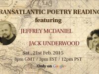 On Saturday, Feb 21, B O D Y’s own Christopher Crawford will be hosting a Transatlantic Poetry Reading featuring two fantastic poets from either side of the pond. Jeffrey McDaniel, like all the best American geniuses, is from Philadelphia, while Jack Underwood is from Norwich.